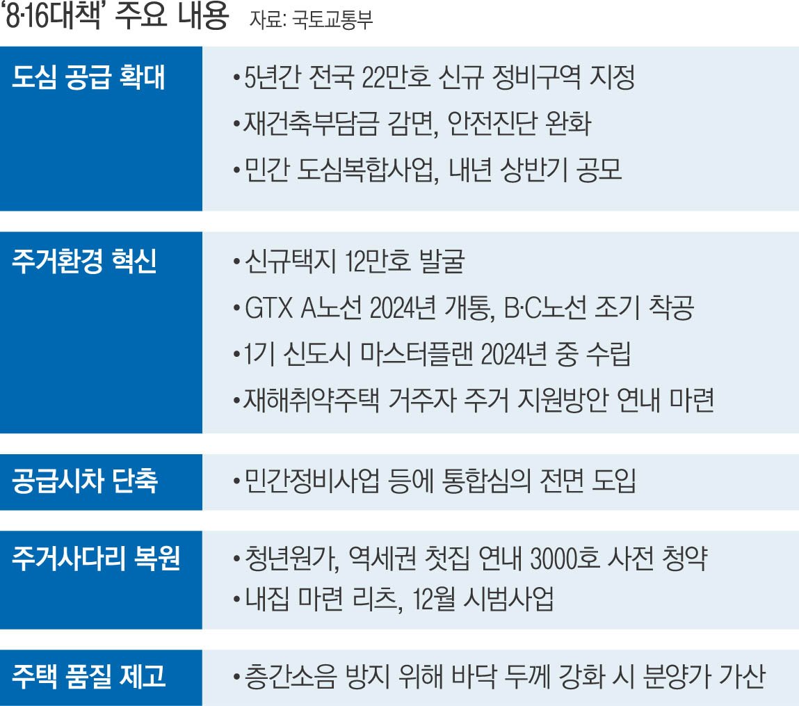 국토교통부는 8월 16일 향후 5년 공급 계획과, 민간의 활력 제고, 공공의 지원, 주택품질 제고 등 국민 삶의 질 개선을 위한 '국민 주거안정 실현방안'을 관계부처 합동으로 발표하고 이 같이 밝혔다.
